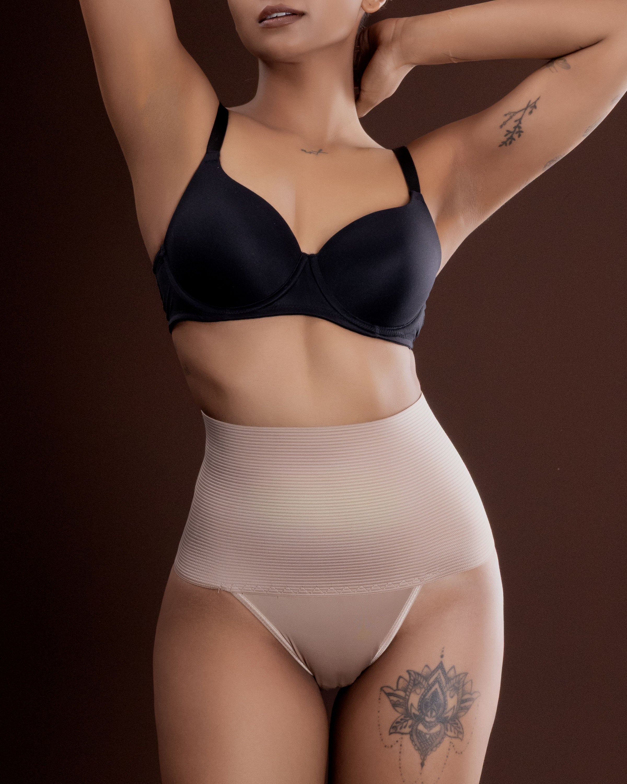Shape your body with our High-Waist Tummy Control Thong. It helps flatten your tummy and gives a smooth look under any outfit. Made from soft, stretchy fabric, it feels comfortable while giving gentle support. The thong design ensures no visible panty lines, making it perfect for tight clothes.